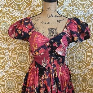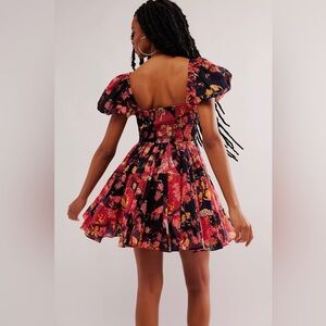 NWOT Free People Sundrenched Floral Puff Sleeve Mini Dress Dark Red Combo size S