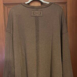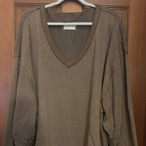 NWOT Free People Venice V-Neck Sweatshirt in Brown Bear size- LARGE