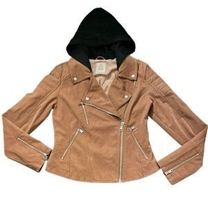 NWOT Free People We The Free Harriet Hooded Vegan Leather Moto Jacket Chocolate. Size S.