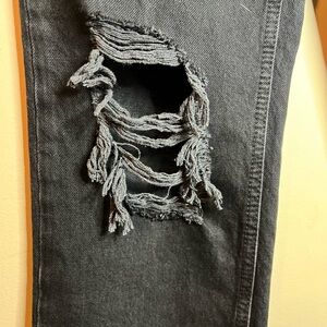 Stylish and edgy black distressed jeans perfect for a casual look. Pair with your favorite top for a chic outfit.