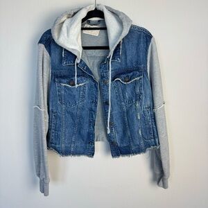 New without tag no flaws Free People Women's "Throwback Hooded Denim Knit Jacket" Boho Crop Size S