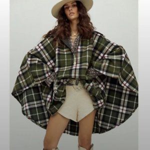 NWOT Free People Woodstock Cozy Brushed Plaid Poncho Cape One Size