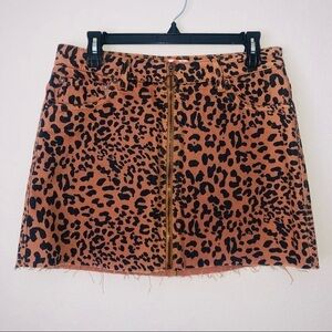 A fun denim leopard print mini skirt with full zip closure is the perfect piece to add to your wardrobe. New without brand tags. No stains, rips or holes. Smoke free home.