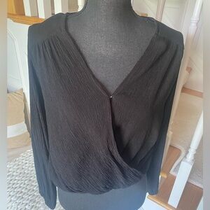 NWOT Free People size XS Black long sleeve faux wrap top. Hook and eye closeure