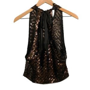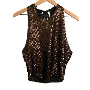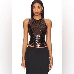 Intimately FP Disco Fever Cami in chic brown combo. This cami features a back kevhole with a back tie closure and is adorned with tonal fringe sequin embellishments throughout, making it perfect for a night out.