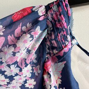 Add some print to your wardrobe with this beautiful bodysuit featuring a deep V-neckline and bold balloon sleeves with button-front detailing.