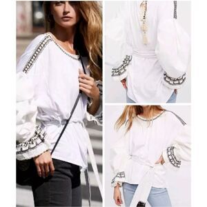 NWOT Free People On Holiday Embroidered Blouse Size Small