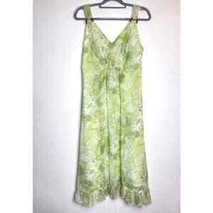 NWOT Free Style Women's Midi Dress Green M Paisley Beaded Y2K Fairy Cottage