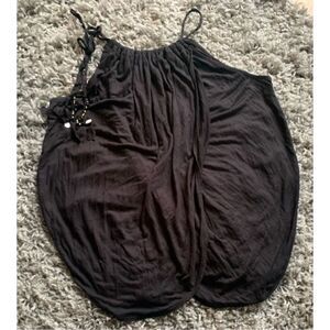 NWOT Free People Black Gathered Neck Beaded Flowy BOHO TANK TOP XS