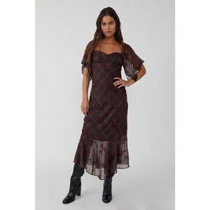 NWOT Free People Grunge WhimsyGoth Plaid Sheer Midi Dress Size 8 Fallen Flowers