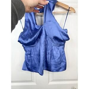 NWOT French Connection Blue Satin Halter Top Womens Size XS Smocked back