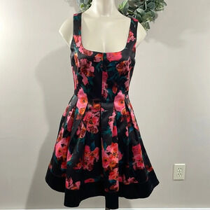 NWOT French Connection Sleeveless Black Floral Dress with Pockets 0