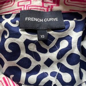 NWOT French Curve Navy White Pink Printed Tunic Style Dress Size XS