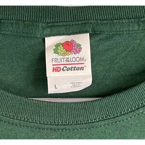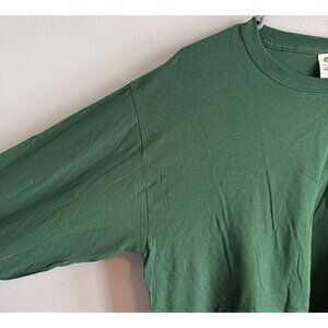 NWOT Fruit of the Loom men's long sleeve, green crewneck T-shirt in large size. Made from 100% cotton for maximum comfort and durability.