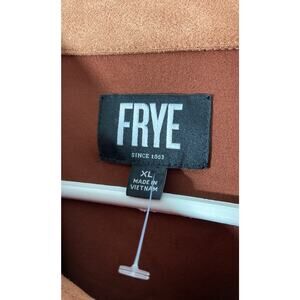 Frye Faux Suede Shirt Jacket, also known as a Shacket. Features a snap closure and comes in a stylish brown color. This men's size XL is the perfect blend of shirt and jacket!