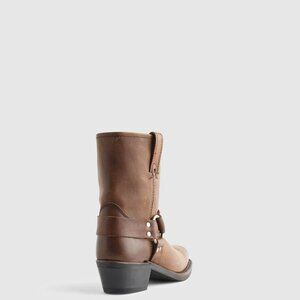 Coming in smooth leather that breaks in perfectly with each wear, these vintage-inspired biker boots feature a square toe, harness strap and rugged rubber sole.