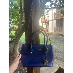 NWOT Furla Nuvola Mini Boston 2-way blue bag logo designer leather charm
