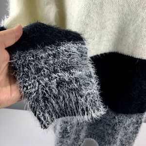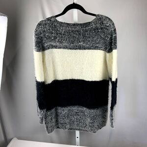 NWOT! Fuzzy (Rabbit Hair Feel) VENUS Color Block Sweater Grey/Cream/Black Size L