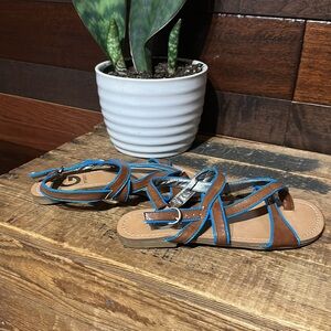 NWOT G By Guess Brown and Blue Strappy Sandals