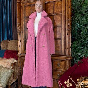 NWOT G by Giuliana Black Label Pink Faux Shearling Teddy Double Breast Long Coat