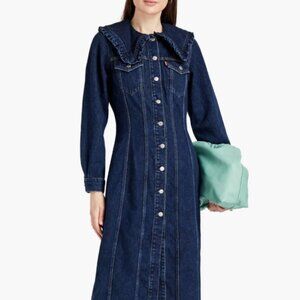 NWOT GANNI X LEVI'S Ruffle-trimmed Denim Shirt Mini Dress XS $475