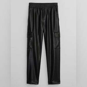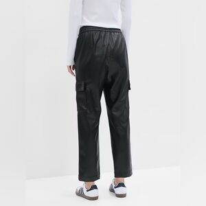 NWOT! GAP Black Mid Rise Easy Vegan-Leather Cargo Pants - Size Large Tall💛