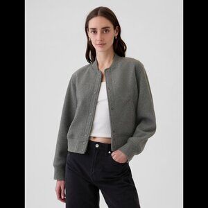 The very popular and *brand new* Fall 2024 GAP Women's Wool Bomber Jacket that is no longer for sale online. Sold out quickly with 81 five star reviews... Super quality made piece. Removed tags, but never worn and just downsizing my jacket collection. Your win! Has a nice weight to it, and a flattering, slightly cropped fit. Fully lined. Retailed for $148.