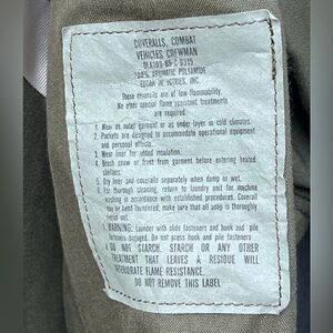 GENUINE U.S. ARMY ISSUE NOMEX COMBAT VEHICLE CREWMAN (CVC) COVERALLS SIZE - SMALL - SHORT HEIGHT - LESS THAN 67 INCHES CHEST SIZE 33- 37 - 41 INCHES NATO SIZE 6070 / 8494 COLOR - OLIVE DRAB GREEN CONDITION - BRAND NEW MADE OF 100 % DUPONT NOMEX ARAMID FABRIC TO PROTECT THE WEARER FROM FLASH BURNS NSN 8415-0 CONTRACT # DLA100-85-C-0315 THIS FINE SET OF FLAME RETARDANT DUPONT NOMEX COMBAT VEHICLE CREWMAN COVERALLS WAS MADE FOR THE US ARMY BY EDGAR INDUSTRIES, INCORPORATED OF NEW KENSINGTON, PENNSYLVANIA, USA THESE COVERALLS HAVE A ZIPPERED PEN AND PENCIL POCKET ON THE LEFT SHOULDER, TWO ZIPPERED SLASH POCKETS ON THE CHEST, TWO ZIPPERED SLASH POCKETS AT THE WAIST, TWO ZIPPERED CARGO POCKETS ON THE THIGH, TWO ZIPPERED CARGO POCKETS ON THE OUTSIDE OF THE CALF, AND A TWO-WAY ZIPPER FROM CROTCH TO COLLAR THE ANKLES AND WRISTS HAVE AN ELASTICIZED AND ZIPPERED CLOSURE FOR EASE OF WEAR AND COMFORT THIS ITEM IS CLEAN AND BRAND NEW PLEASE FOLLOW LAUNDERING INSTRUCTIONS CLOSELY FOR EXTENDED USE, LONG FABRIC LIFE AND TO RETAIN THE FLAME RETARDANT QUALITIES OF THE DUPONT NOMEX ARAMID FABRIC THIS ITEM COMES FROM A SMOKE-FREE, PET-FREE HOME