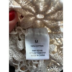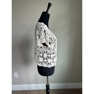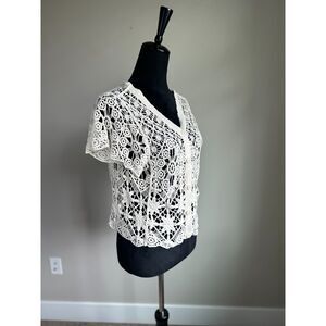 NWOT GLG Women's Cream Knit Crochet Button Front Short Sleeve Top Size M
