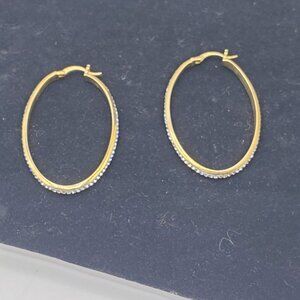 New without tag super cute, gold tone oval shaped hoop earrings with shiny rhinestones in the center. 2.25" long.