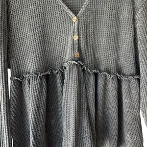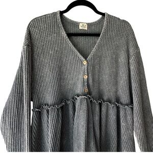 Long sleeve gray waffle knit babydoll top from Blue Buttercup