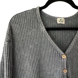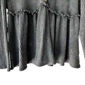 NWOT | GRAY LONG SLEEVE WAFFLE KNIT BABYDOLL TOP BUTTON FRONT V-NECK | SMALL