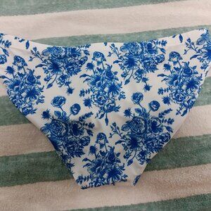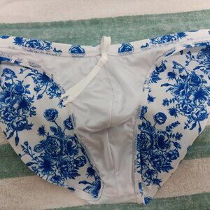 NWOT GREAT ASIA SWIM BRIEF, BLUE FLOWERS ON WHITE, ASIAN SIZE "L"