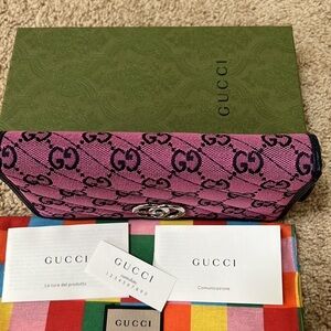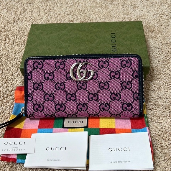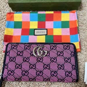 NWOT! Gucci GG marmont matelasse diagonal multi colored zippered wallet. One internal zippered pocket, several card slots and bill slots. Comes with box and dust bag. Never used. Sold out.