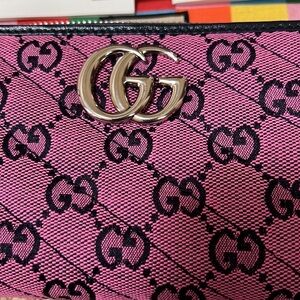 NWOT! GUCCI GG monogram multicolor marmont matelasse zip wallet. 443123.0959