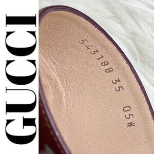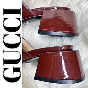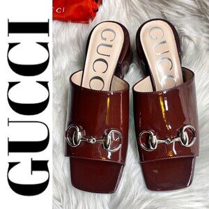 NWOT GUCCI Lexi Patent Leather Horsebit Accent Burgundy Slides, Size 35
