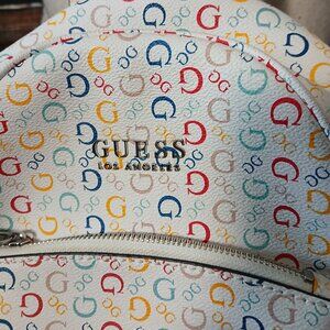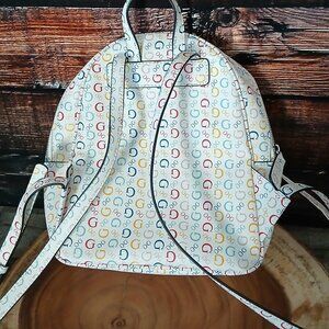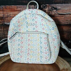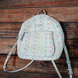 NWOT GUESS Bag Mini Backpack White Rainbow Logo Multi Pockets Adjustable Straps