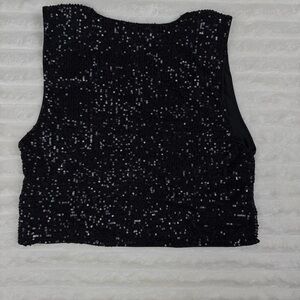 NWOT GUESS Black Sequin Sleeveless V-Neck Crop Top – Size XL Glam Shiny Sparkly