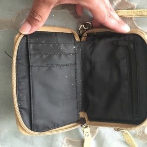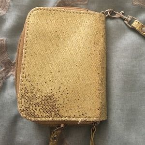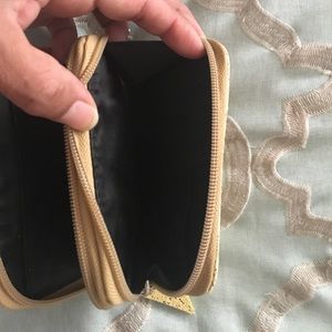 Beautiful Gold Glitter Wristlet. Features pockets for cards/id's, money and a side zipper for coins/bills. New With Out Tags. Not scratched, Not damaged. Gorgeous Gold Glitter.