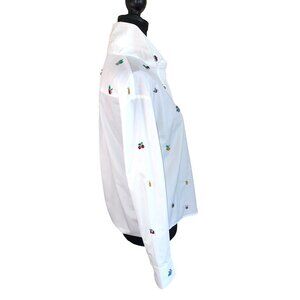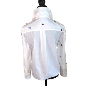 NWOT Gabby Isabella White Multi Fruit Jewel Embellished Embroidered Shirt Office