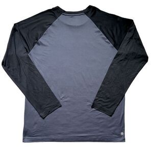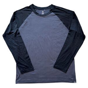 This new without tags long-sleeve shirt is so soft and seems very comfortable - fabric is 94% polyester with 6% spandex for stretch. Color is a dark grey with black contrasts. It was NWT but the tags popped off when I pulled it out of the drawer - I’ll include them with your order. Never been worn or washed. Approximate measurements lying flat: pit to pit 23.5”, total length 30“. Let me know if you have any questions! Bundle and save, and please note that I reuse shipping materials whenever possible ♻️