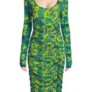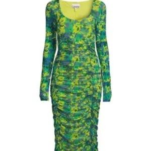 NWOT Ganni Sulphur Spring green abstract print ruched midi dress sz 34/S $395