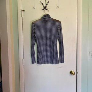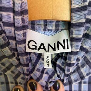 NWOT Ganni blue fitted turtle neck sheer mesh back and arms