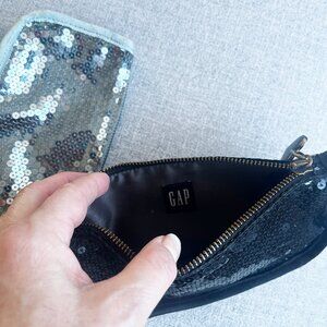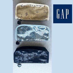 NWOT Gap Gold, Black, & Silver Sequin LOVE Cosmetic Make-up Bags / Pencil Cases