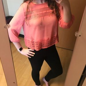 New without tags! Never worn and in excellent condition! Beautiful sheer top with floral lace detail. It is more of a cropped style top, perfect for a skirt or a cute pair of high rise jeans! Please don't hesitate to ask me any questions, and feel free to make me an offer! :)