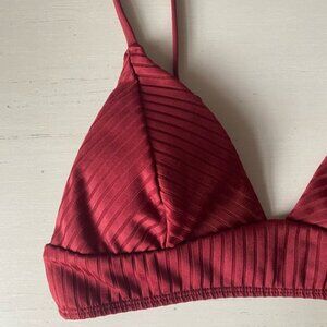 like new worn ONCE absolutely adorable garage size extra small burgundy maroon red ribbed triangle bikini top with spaghetti straps. has removable pads and adjustable straps super cute with any bottom! perfect for a day at the beach or tanning by the pool!
