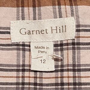NWOT Garnet Hill Essential Boyfriend Brown Plaid Button Front Shirt - Size 12