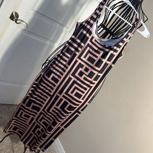 NWOT Geometric Patterned Black and Tan Bodycon Maxi Dress