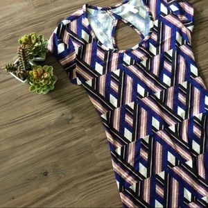 NWOT Gorgeous geometric print knit dress with key hole opening in the back. Lightweight stretchy knit material is comfortable yet flattering. 96% cotton 4% spandex. Never worn!