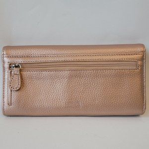 NWOT Giani Bernini rose gold wallet. adjustable snap cover with a lot of compartments. Made with genuine leather and non-leather trim.